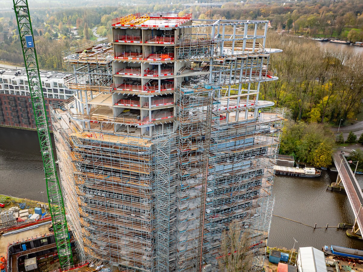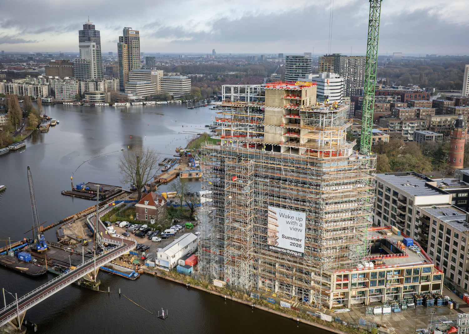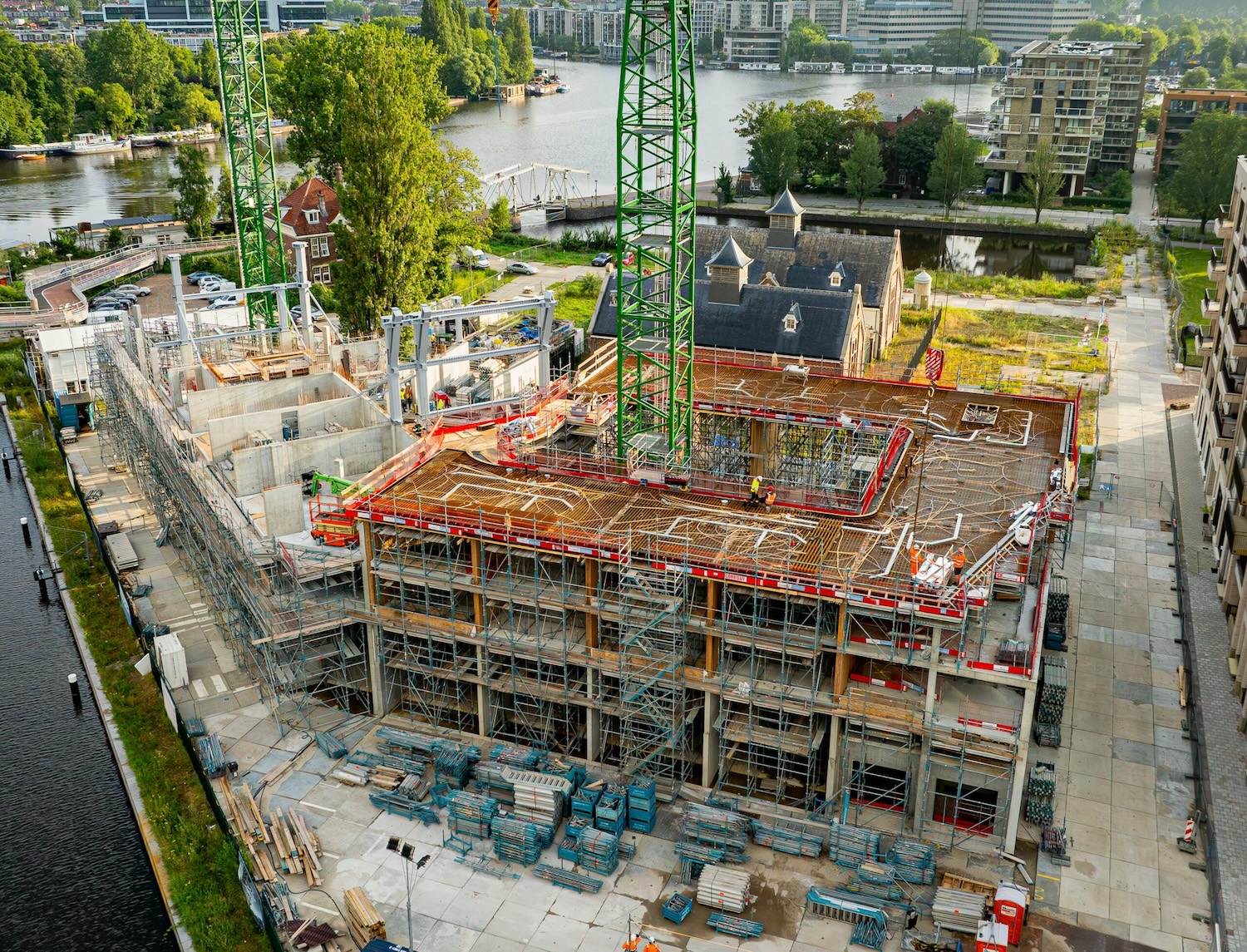 Locatie: Amstelkwartier, Amsterdam • Omvang: 14.800 m2 • Oplevering: 2027 • Start bouw: eind 2021 • Opdracht en ontwikkeling: Kondor Wessels Vastgoed • Architectuur: Koschuch Architects (projectteam: Maikel Super, Ralph van Mameren, Rui Duarte, Maurizio Brambilla, Danai Tamiolaki, Milos Dubljevic, Jaco de Koning) • Constructief ontwerp: ARUP • Concept-ontwikkeling: Tenderboost • Landschapsontwerp: Boom Landscape • Hoofduitvoering: Kondor Wessels • Staalconstructies: Severfield • Impressies: Koschuch en Beauty & the bit • Foto’s: Slaman & Vos, Fly with Daniel • Redactie: Arend Dolsma (Bouwen met Staal), januari 2026
