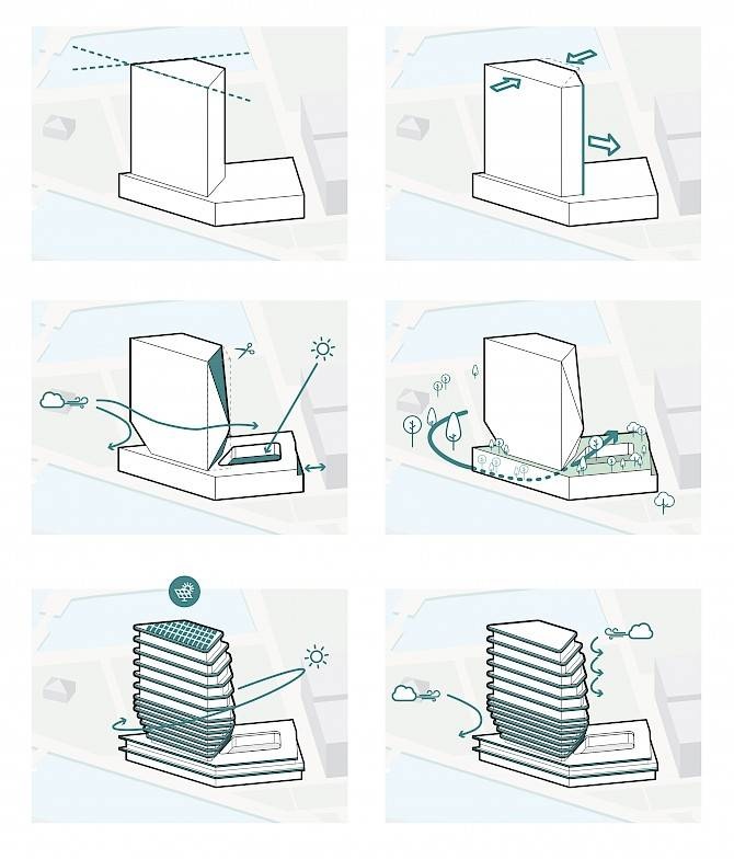 Het definitief ontwerp verschaft Elements een gelede hoofdvorm met terugliggende appartementengevels en deels flink uitkragende balkons. Dit resulteert in een geriefelijk windklimaat in en rondom de woontoren en een gereguleerde bezonning en daglichttoetreding tot de appartementen. PV-panelen op het dak van de woontoren en ín de randen van de balkons voorzien volledig aan de energievraag van het gebouw. Daarmee wordt Elements gepromoveerd van een Bijna Energie Neutraal Gebouw (BENG) tot Energie Neutraal Gebouw (ENG).