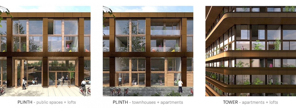 De flexibiliteit en aanpasbaarheid van de woningen in Elements gaat vergezeld van een assorti aan secundaire functies. De woontoren loopt op vanuit een brede ‘voet’ met binnentuin, wintertuin, daktuin en ‘commerciële plint’. De horeca, in de vorm van ‘Bar Seasons’, komt volledig tot zijn recht in de kop van deze onderbouw. Bij mooi weer kunnen de harmonicadeuren in de gevel helemaal open. Aan de parkzijde is ruimte voor nog meer commerciële faciliteiten. Het ‘Common Lab’ is er al gevestigd, met werkplekken en gemeenschapsruimten voor de bewoners. Het Lab is tevens geschikt voor activiteiten met buurtgenoten.