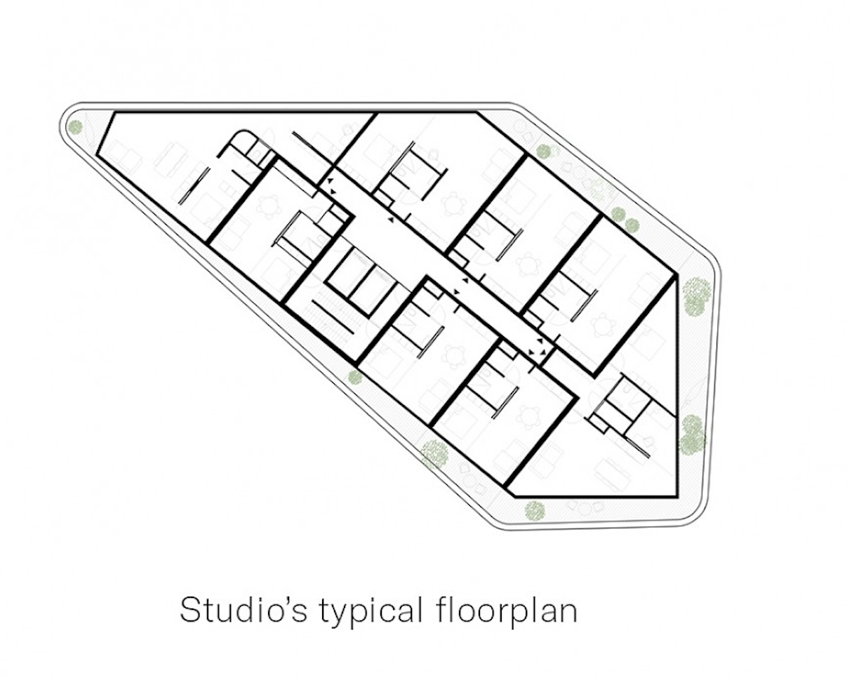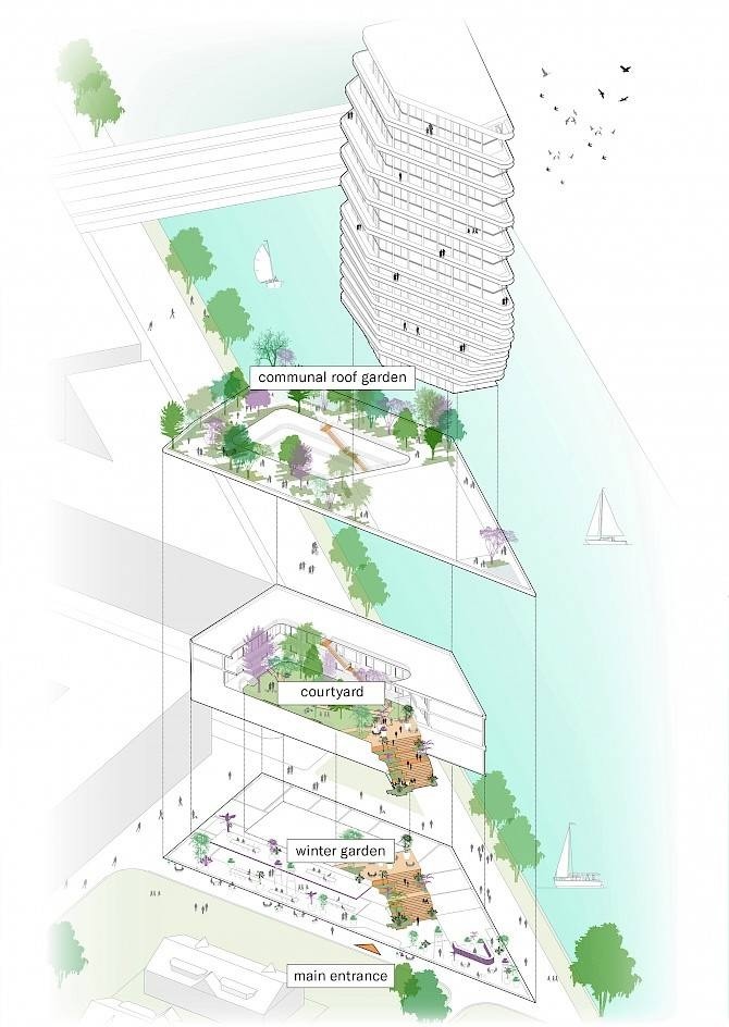 Als antwoord op de groeiende, maar ook veelzijdige vraag naar woningen én om een mix aan eigenaars en huurders te trekken, zijn in het gebouw studio’s in het midden-huursegment, vrije-sector koopwoningen en exclusieve dubbelhoge lofts voorhanden. Mede dankzij het scala aan collectieve voorzieningen kunnen de verschillende ‘typen’ bewoners elkaar gemakkelijk ontmoeten en mogelijk zelfs uitgroeien tot een inclusieve woongemeenschap aan de Amstel.