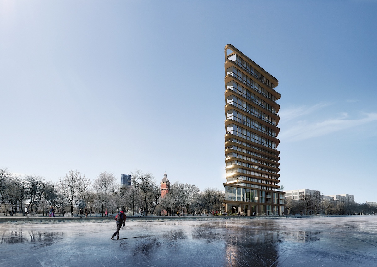 Misschien wel de grootste innovatie van het project, zeker gezien de woonfunctie, is de toepassing van een draagconstructie van hout, beton en staal. Door voor elk constructiecomponent het meest optimale materiaal te kiezen, kan uiteindelijk ruim 50% worden bespaard op de materiaalgebonden milieubelasting.
