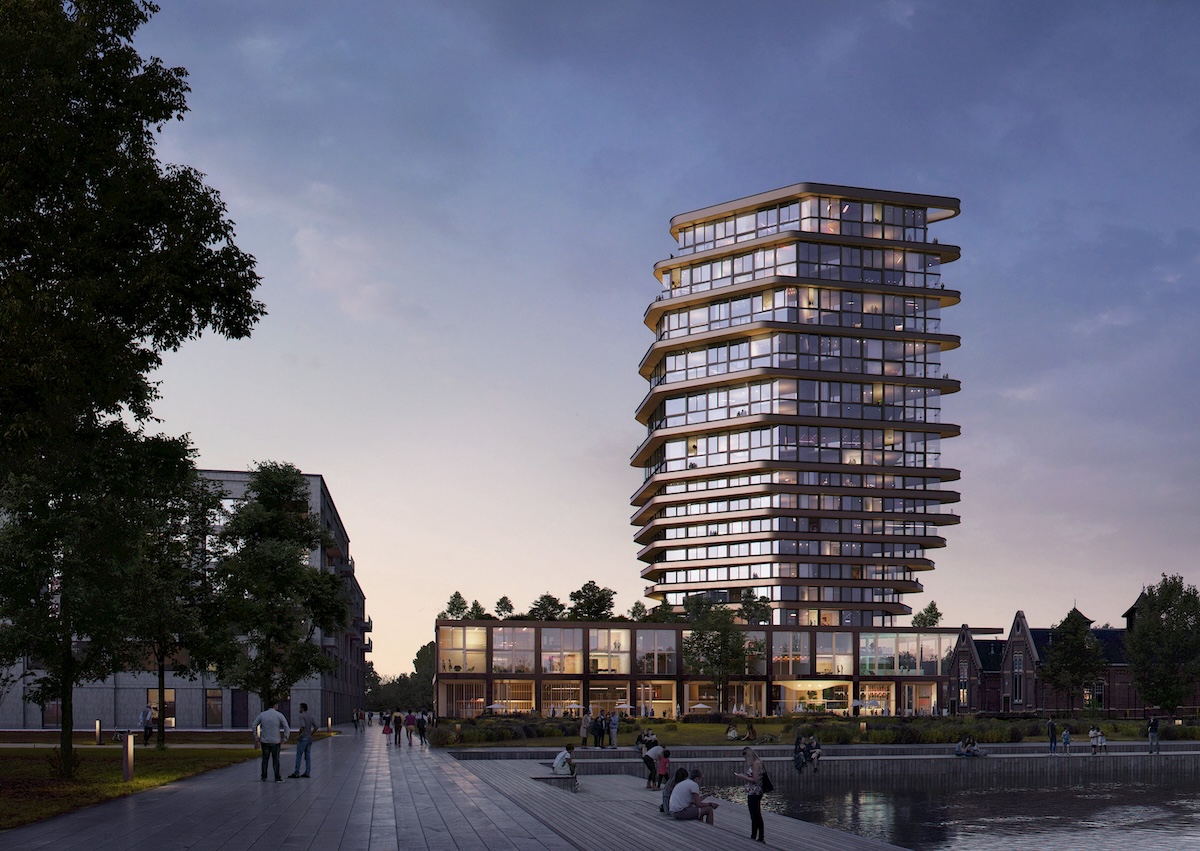 Met Elements krijgt het Amstelkwartier in Amsterdam er een iconisch en uiterst comfortabel woongebouw. Vrijstaand op de zuidwest hoek van de wijk aan de Amstel, vormt de 70 m hoge toren al van verre een direct herkenbaar ijkpunt. De sculpturale hoofdvorm met verschillende uitkragingen en inspringingen en een bronskleurige afwerking, afwisselend glanzend en mat, geven het gebouw een onderscheidende identiteit en dynamisch voorkomen. En aan gerief geen gebrek: bij de 70 huurwoningen in het middensegment en 74 vrije sector koopwoningen gaan (onder meer) een dakterras, binnentuin, binnenzwembad en diverse commerciële faciliteiten. Het architectonisch ontwerp komt van Koschuch Architects.
