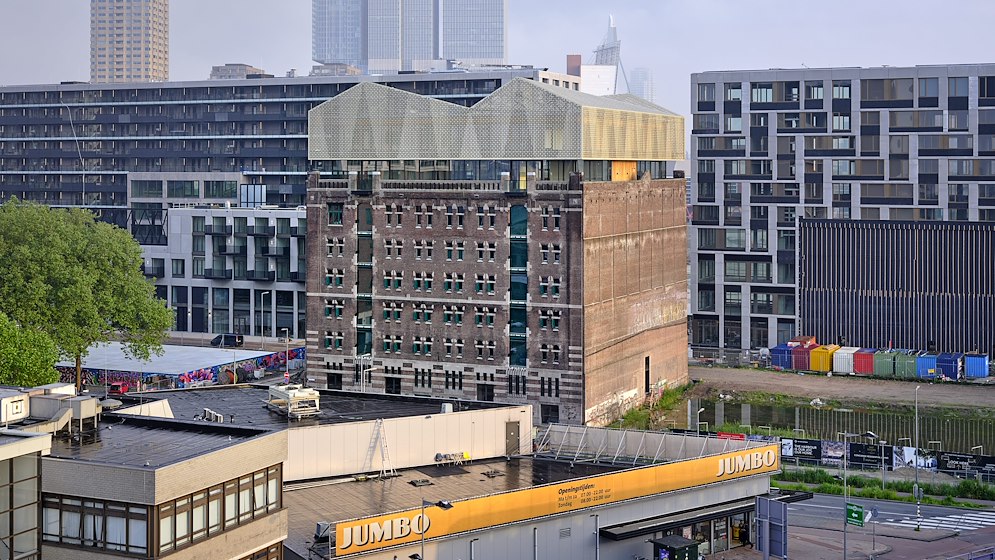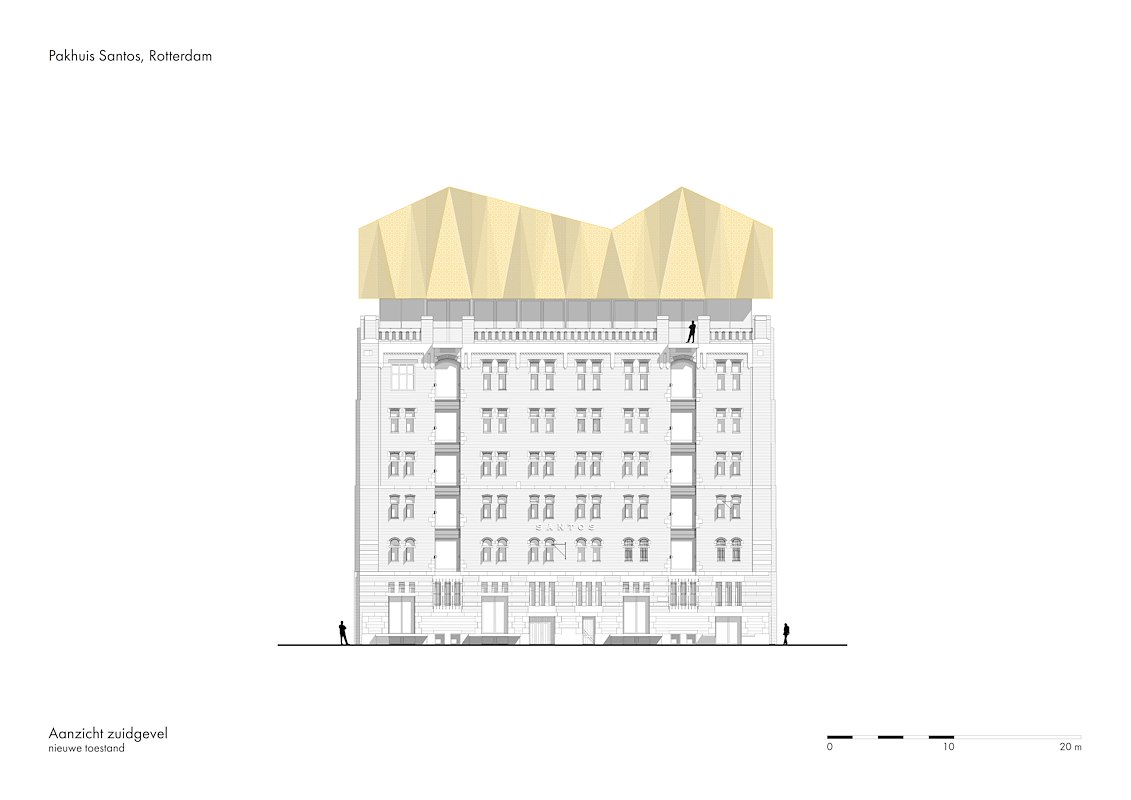 Santos herleeft. Het voormalige pakhuis op de Brede Hilledijk bij de Rotterdamse Rijnhaven fungeert nu als modern-historische huisvesting van het Nederlands Fotomuseum. In hun gezamenlijk renovatie-ontwerp hebben Renner Hainke Wirth Zirn Architekten uit Hamburg en WDJArchitecten uit Rotterdam de benodigde nieuwe elementen met eerbied voor de monumentale oudbouw geïntegreerd (zowel in als óp het gebouw). Tegelijkertijd is de bestaande kenmerkende componenten zoals de bakstenen gevels, houten vloeren en gietijzeren hoofddraagconstructie een vernieuwde functionele en esthetische betekenis verleend.