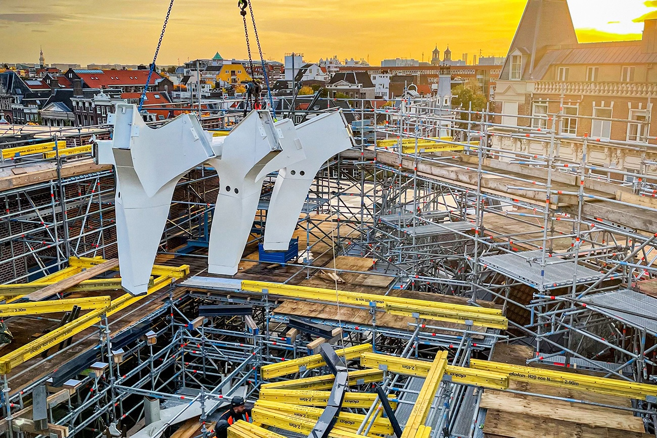 Locatie: Binnengasthuisterrein, Amsterdam (centrum) • Omvang: 16.000 m2 • Oplevering: september 2025 • Opdracht: Universiteit van Amsterdam (UvA) • Architectuur: architectenbureau J. van Stigt (renovatie en herbestemming) en MVSA Architects (nieuwbouw) • Constructief ontwerp: Van Rossum Raadgevende Ingenieurs • Hoofduitvoering: Volker Staal en Funderingen en Van Hattum en Blankevoort • Staalconstructies atriumkap en ‘boom’: Buiting Staalbouw • Installatie-advies: Valstar Simonis • Bouwfysisch advies: Peutz • Gevelscherm: Nedcam • Typeface design gevelscherm: Erik van Blokland • Tekeningen: MVSA • Foto’s: Jannes Linders (oplevering), MVSA, Buiting Staalbouw • Redactie: Arend Dolsma (Bouwen met Staal), oktober 2025