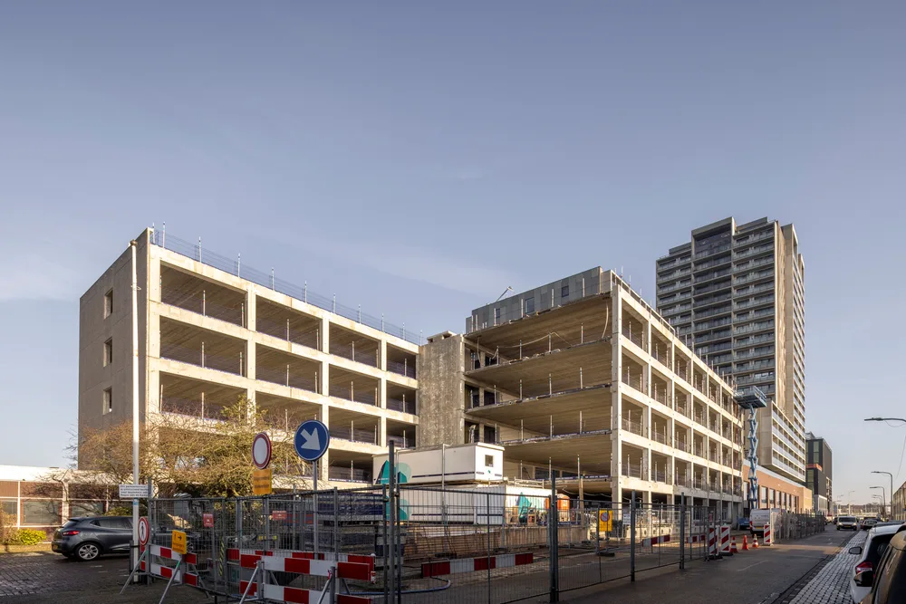 Het voormalig kantoorgebouw van de politieacademie in de Wegastraat op De Binckhorst in Den Haag is in het eerste kwartaal van 2026 begonnen in een nieuwe functie als parkeergarage voor de medewerkers van het naburige Eenheidsbureau Politie Den Haag. Nu komt het herbestemmen van een vroeger kantoor tot parkeervoorziening al niet vaak voor, nog meer uitzonderlijk is dat het getransformeerde, 16.000 m2 grote Wega.punt in de toekomst ‘in een handomdraai’ opnieuw een transformatie kan doormaken, bijvoorbeeld terug naar een kantoorfunctie. Voor het ontwerp van de omkeerbare herbestemming tekent cepezed.